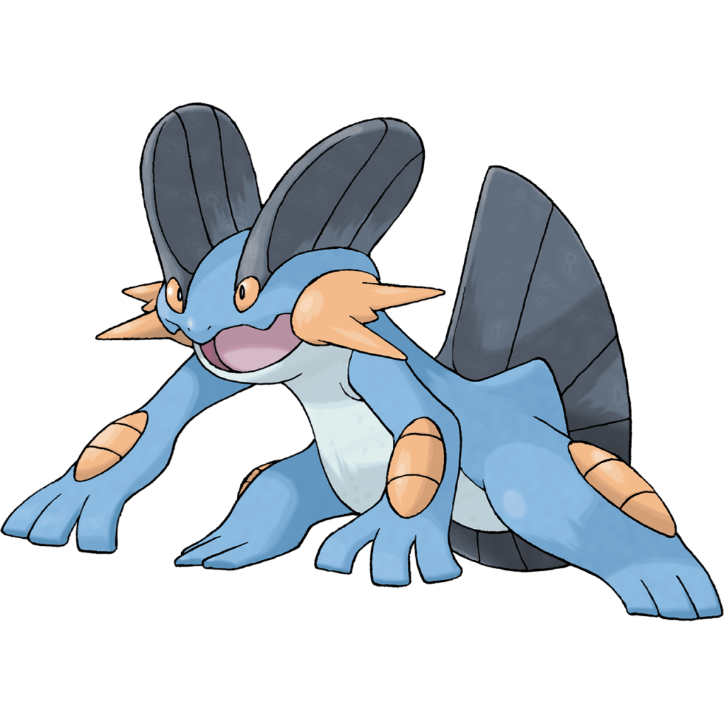 Swampert is also the first of several Pokémon on this list to have a Mega Evolution. Introduced in Generation 6 as a way to try spice up battles; Mega Evolution allows certain Pokémon holding Mega Stones (or knowing a certain move, in one broken case) to unlock a pseudo-evolution in the middle of a battle, changing their form, stats, and abilities. This was only allowed once per battle.