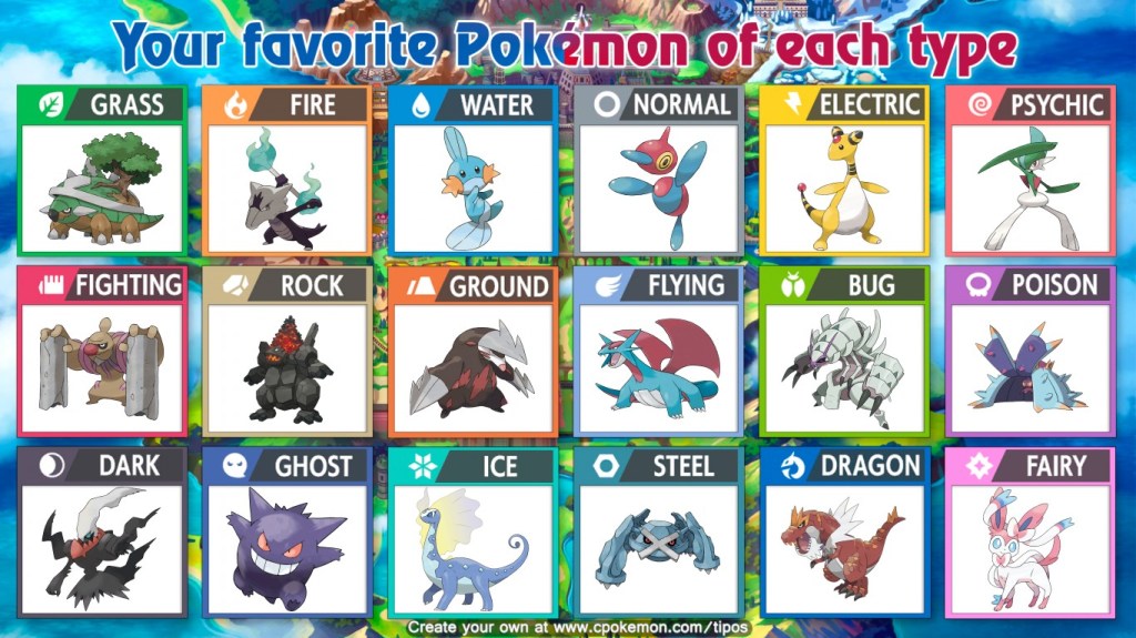 So, whilst this is semi-obvious, some of the Pokémon listed in the graphic above are not going to be my absolute favourites, for some types it was hard to pick one representative that communicates my love and affection for what that type embodies. And conversely, for some of choices I have made, they are my favourite, no questions asked. Why I have made certain choices will be explained in the respective section for each Pokémon.