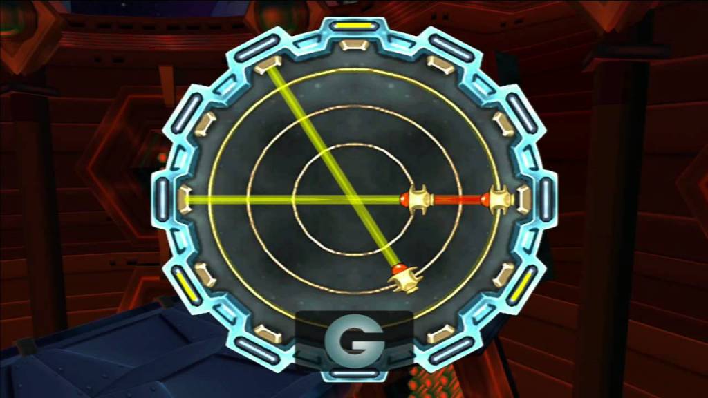 Various gadgets become available to the player throughout the game’s progression, used for either advancing through a plot-mandatory route, or for accessing hidden secrets. A lot of them are used for mobility, Grind Boots for grinding rails, Swingshot for swinging on targets, Magneboots for magnetising yourself onto surfaces and a Hydrodisplacer to create areas to swim in.