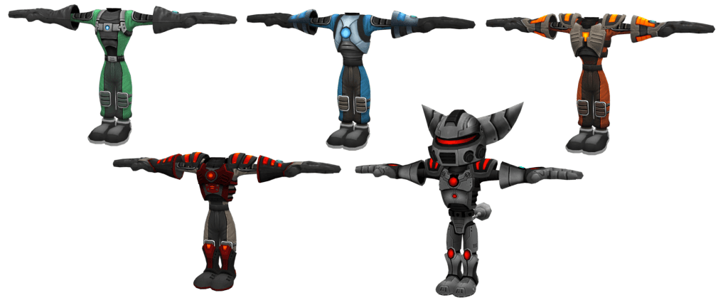 Both Clank and Giant Clank return for the game. The latter is no different, he has missiles, bombs and his fists (though those do a lot more damage this time round). One segment is compulsory, one is for an optional item. The former has some changes with Gadgebots making their return but three types of unique bots appearing. A Bridge Bot for traversing gaps, a Hammer Bot for smashing obstacles and operating catapults, and a Lifter Bot which is used for one whole obstacle and is never seen again.