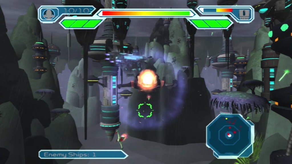 During these segments, a collectible called “Raritanium” can be dropped by ships. This can be taken to Slim Cognito’s Ship Shack for various ship upgrades such as better lasers, new secondary weapons or upgraded engines. This is also where the unlockable ship paint jobs can be purchased.