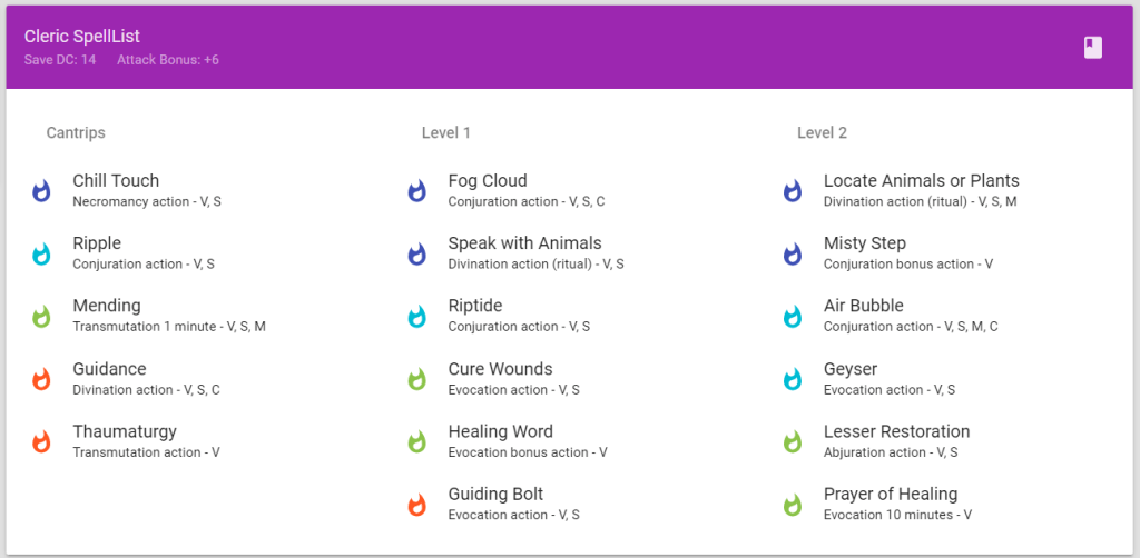 As a cleric, Marieya has access to a mixture of support spells, healing spells, and, in the case of some supplemental homebrew matching her domain, some absolutely insane offensive spells.