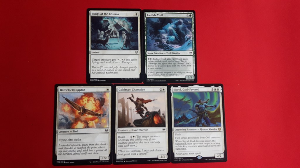 Sigrid appears again for her First Strike and protection ability, but aside from the cards discussed during pack opening there is very little else. Goldmaw Champion can tap something down but this cannot be used on an opponent’s turn due to the limitations of boast, and Battlefield Raptor is a good early start but can be quickly outpaced.