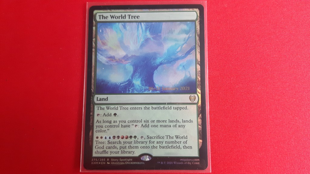 Taking inspiration from Yggdrasil itself, the World Tree is a pretty nice card to open as a foil promo. It gives a surprising amount of versatility in a draft environment mainly for the middle ability, as it provides an unconditional mana fixing solution after the sixth land. The last ability is unlikely to see much use, more for the steep activation cost as opposed to the actual effect.