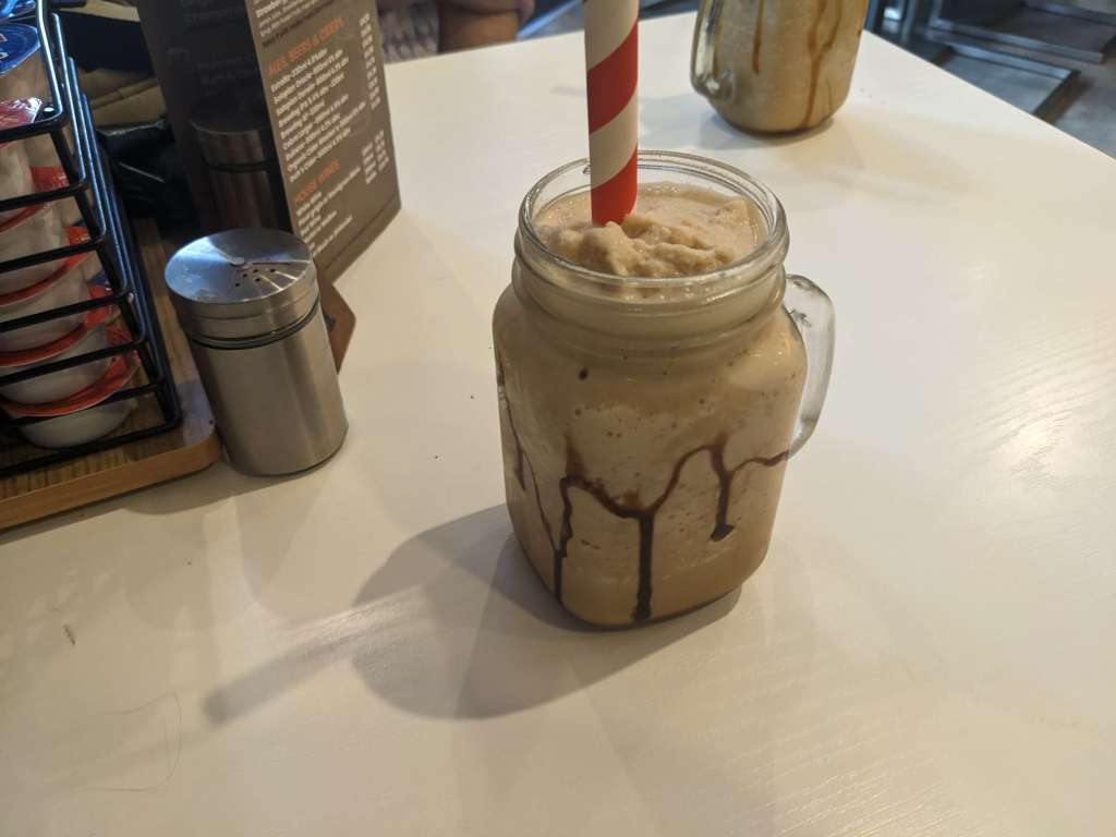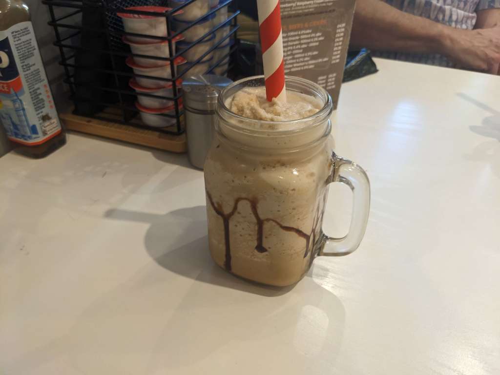 To drink I ordered an Iced Frappe Latte, with the addition of some chocolate syrup. Something like this is a halfway point to what my choice of caffeinated beverage in summer usually is, being a Mocha Frappe. The chocolate flavour was not as pronounced as I would have liked it to be and honestly the coffee flavour was also a bit lacking compared to my taste, but as a vector of caffeine on a hot & humid day like today, it still hit the spot nonetheless.