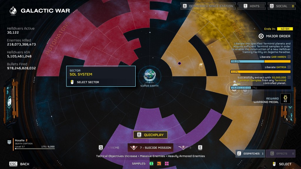 The main way this fight is driven forward is through the regular deployment of “Major Orders” (MO), community-wide objectives that need to be completed or fulfilled within the time given, sometimes within a couple of days or over the span of a week. Players are free to engage with the MO or they can fight whichever faction they prefer.
