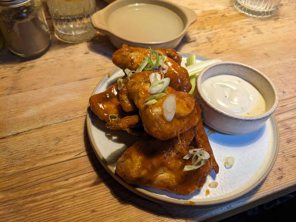 The sauce was the perfect blend of sweet, spicy, and rich, with the chef definitely not skimping on the amount put on the wings, that said the amount of sauce did not negatively impact the crispiness of the wing too, the skin being perfectly crisp to compliment the flavour of the sauce – with the experience only being elevated by the addition of the blue cheese dip served alongside it.