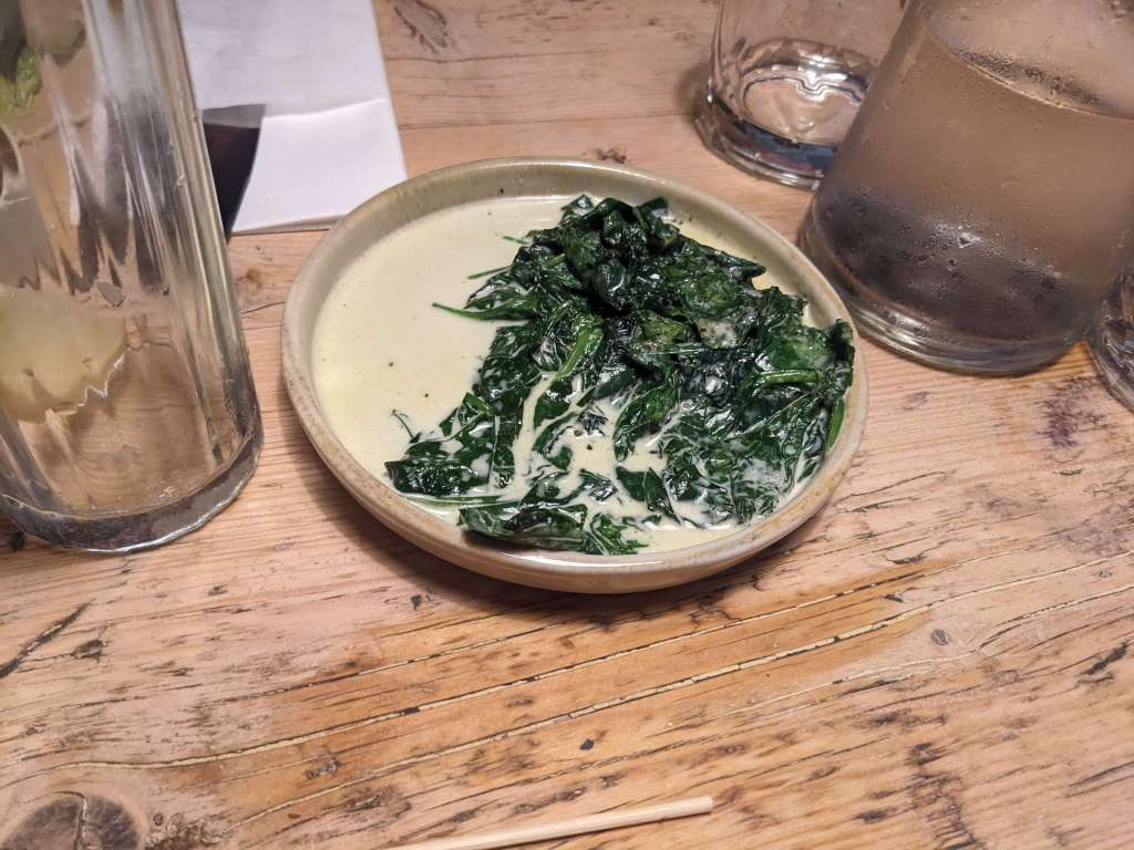 One of the main dangers when making creamed spinach is that it will come out soggy and bland due to the fact spinach contains a great deal of water which can severely dilute the quality of the sauce. But this humble plate exceeded all expectations, the spinach was moist without being soggy, the cream and the leaf itself were perfectly seasoned. If not for the fact I was sharing it with the table, I would have happily eaten it all myself.