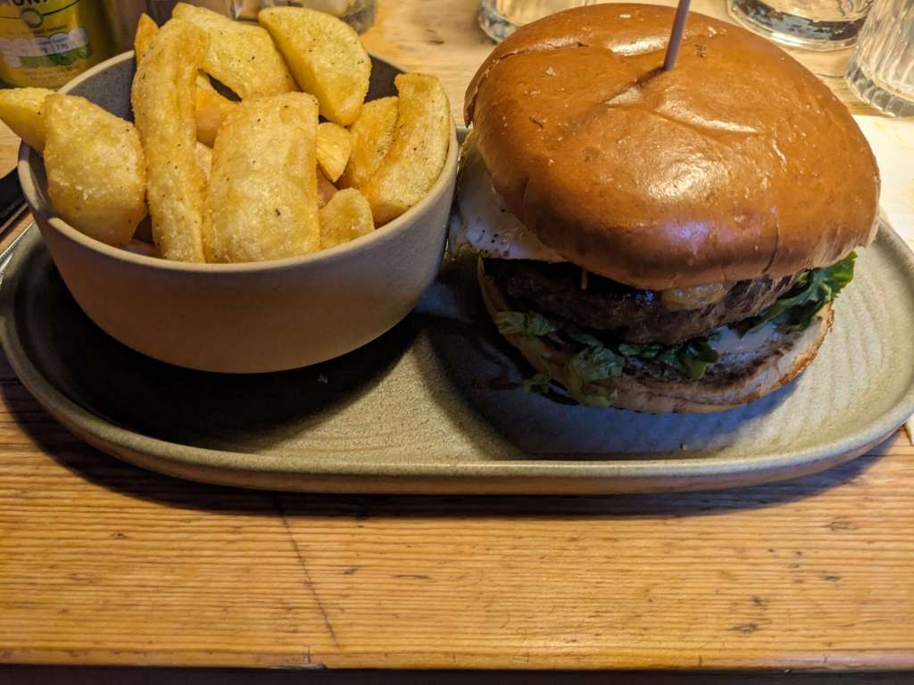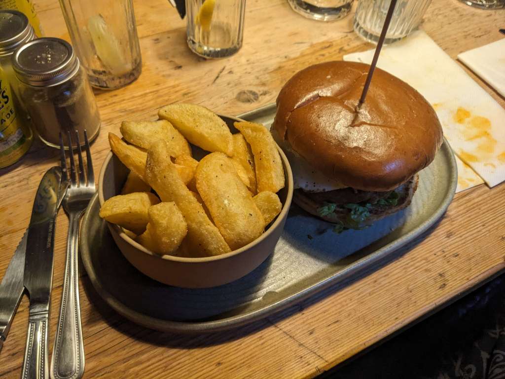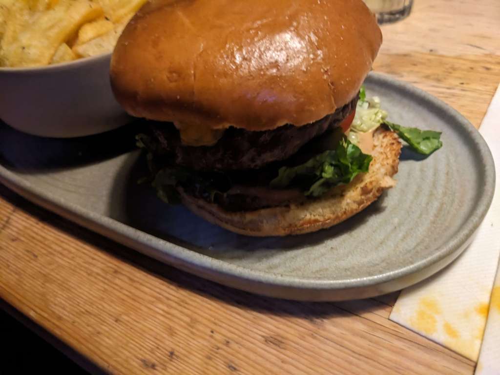 My main was the appropriately titled “Elephant Classic” burger, with my standard addition of a fried egg, bringing the total price to £19 for this absolute beast-sized burger, accompanied by a side of hand-cut chips. (£17 without the egg)