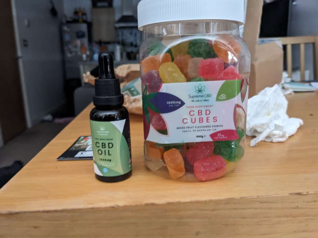 One night as I was just scrolling around, as is my wont, I decided to check out SupremeCBD and see what they had on offer – which led to me seeing they had an “Ultimate Starter Pack” available for £70 which included a jar of CBD gummies and a bottle of CBD oil. Being the amazing deal that it was, I clicked order and in two days time, I had the product in my hands.