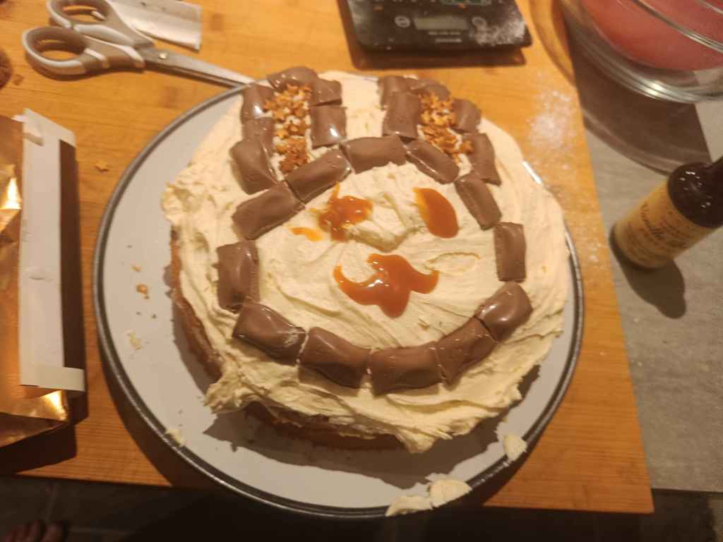 Even with my friend helping me out with each step, the recipe is incredibly easy to follow and made a delicious cake. Plus decorating the top with chocolate pieces in the shape of a rabbit made it look really cute as a caramel bunny cake.