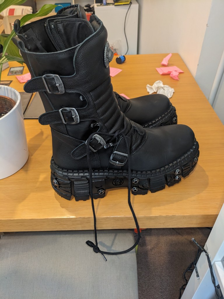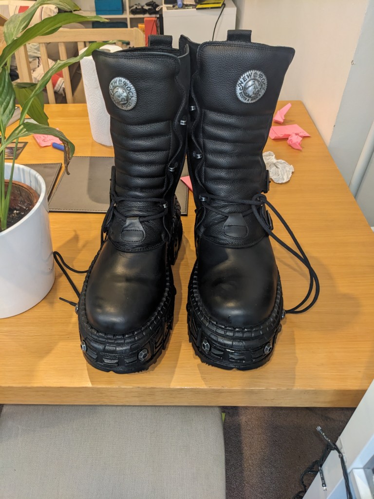 Specifically these shoes are New Rock M-WALL373-S11 platform boots. I bought these ages ago back in March specifically to act as part of my cosplay for my upcoming convention whilst also finally getting a real proper pair of stompers that were not from AliExpress.