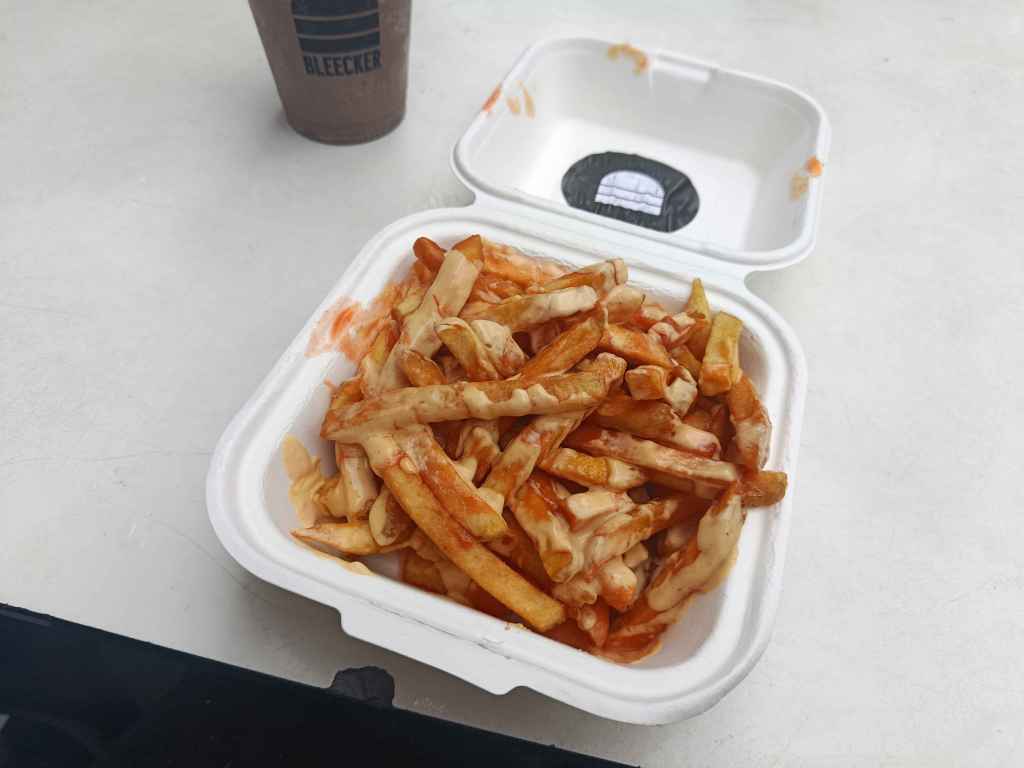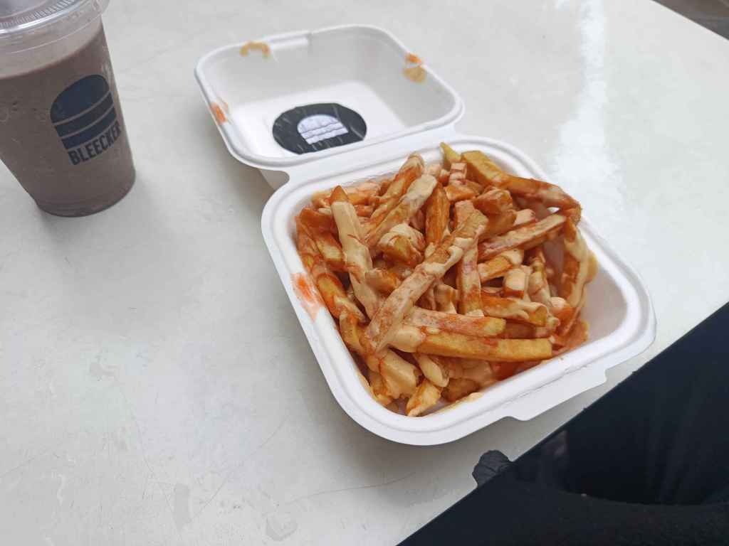 Bleecker is a lot more simple than Five Guys – you get burgers, burgers with bacon, and stacked burgers with bacon. It is similar with the fries, you can get them plain, topped with “house” sauce, “angry” sauce, or both sauces.