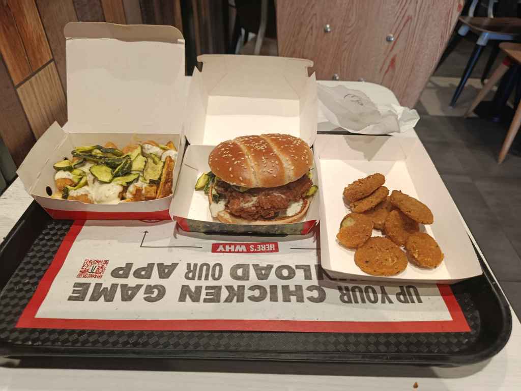 In the past, I was someone that went to KFC fairly often. The allure of a Zinger Stacker topped with a hash brown brought me in a number of times over the years, but as time went on, I found myself going less and less, with the times I did go back in often yielding disappointment as the quality dropped further down in comparison to the prices going up. It was only cause of a recent promotion I found completely by chance when checking the website to see what offers they might have that I decided to go in today, specifically because, as a self-respecting trans woman, I cannot pass up the opportunity for pickle-based foods.